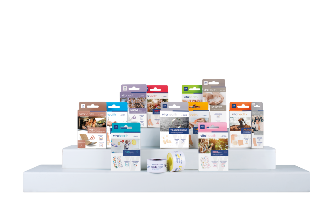vitahealth oferuje kompleksowy asortyment materiałów opatrunkowych, obejmujący zarówno plastry do indywidualnego przycinania (NONVIplast, FABRIplast, SENSIplast, SOFTplast), jak i gotowe zestawy plastrów dostosowane do różnych potrzeb użytkowników.